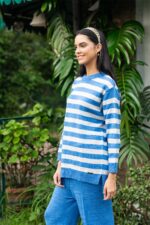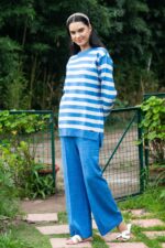 Made from soft-touch knit fabric, it offers breathable warmth and easy wear. The sweater is finished with a timeless crew neckline and dropped shoulders, while the pants feature ribbed detailing and a flexible elastic waistband for a flattering silhouette.